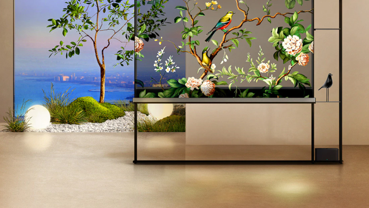 Once on, users can choose to keep the transparency or utilise a blind in the back of the TV to convert to a traditional screen.