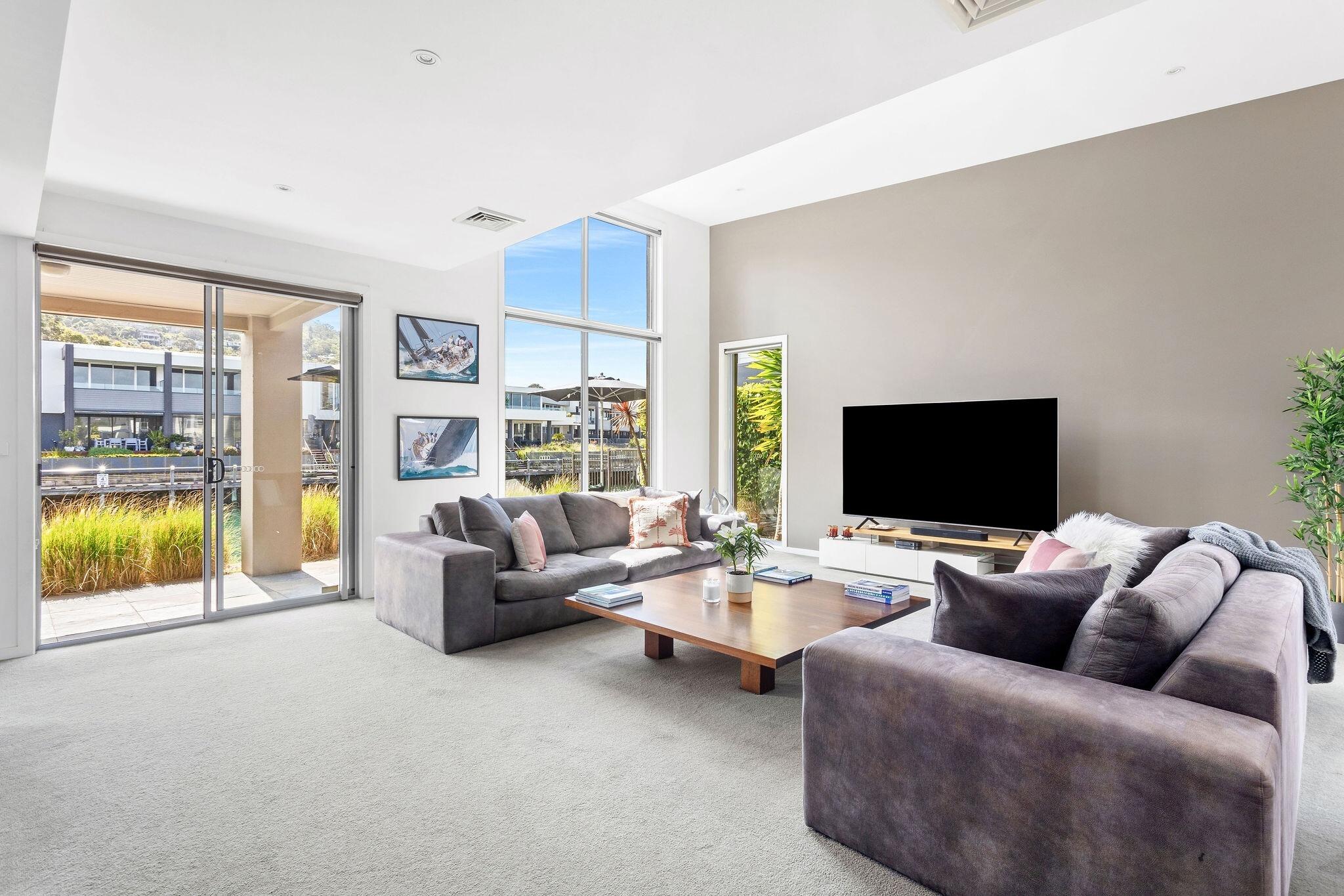 Welcome to 12 Clipper Quay, a stunning four-bedroom waterfront residence in the heart of Safety Beach's prestigious Martha Cove. This beautifully designed home offers a luxurious lifestyle with open-plan living spaces, high ceilings, and large North facing windows that frame breathtaking views of the main canal, Mt Martha hillside and endless sun. The seamless indoor-outdoor flow leads you to a private courtyard plus a covered patio where you can entertain guests or relax while enjoying the serene backdrop of the water, right at your doorstep. There is also a bonus extended pontoon to sit and bask in the sun while the boats sail past.