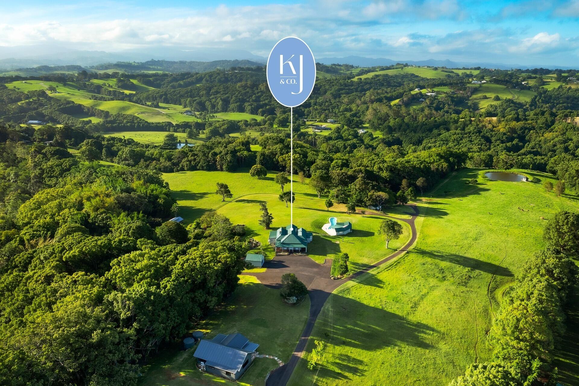 A private hinterland paradise (just 15 mins to Byron’s beaches) the magnificent 100 acre landholding reveals rich fertile soil and green pastures framed by acres of natural bushland. Created as the ultimate hinterland retreat, the property comprises a luxurious Queenslander-style main residence, a separate three bedroom residence, fully self-contained separate studio plus a music studio. Two dams add to the bucolic charm of the estate, while a designer swimming pool with glamorous pool house sets the tone for upscale entertaining and family enjoyment.