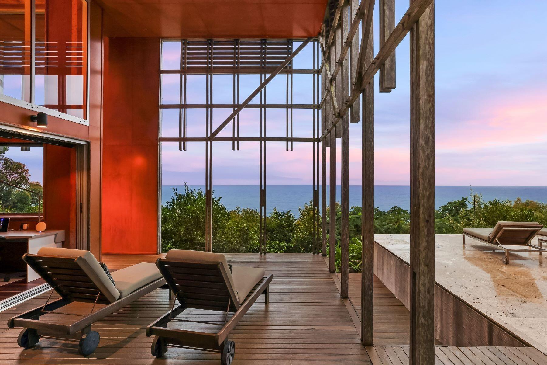 Designed by esteemed architect James Grose to evoke the sensation of gliding above the Pacific Ocean, it reveals its splendour across two pavilions. Linked by a majestic travertine terrace trimmed by shallow reflection pools, each is defined by a seamless indoor-outdoor connection.